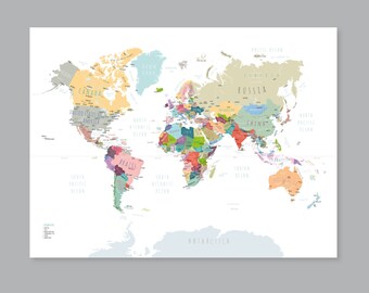 World Map Kids Printable World Map Poster World Map Wall Decal Kids World Map