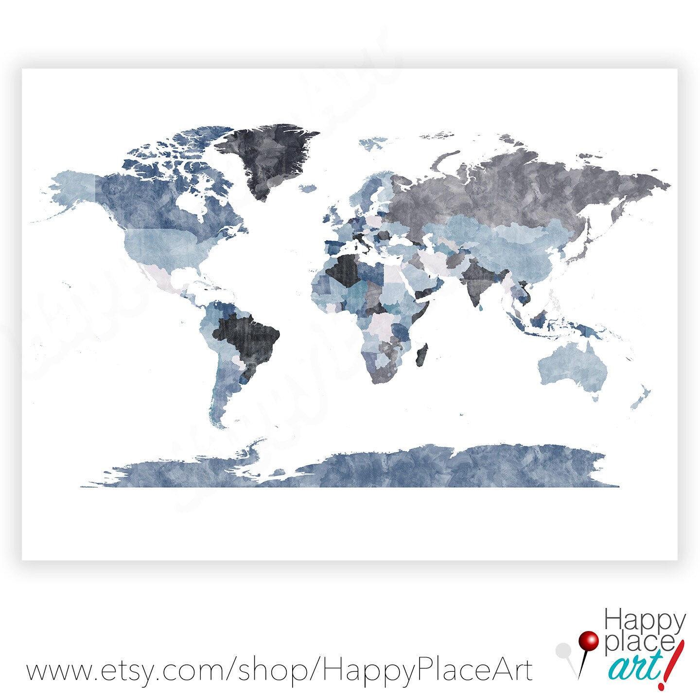 Textured World Map Poster Denim Blue And Greys Gray World Map Poster Printable World Map Grey Wall Art Large World Map Traveller Gift