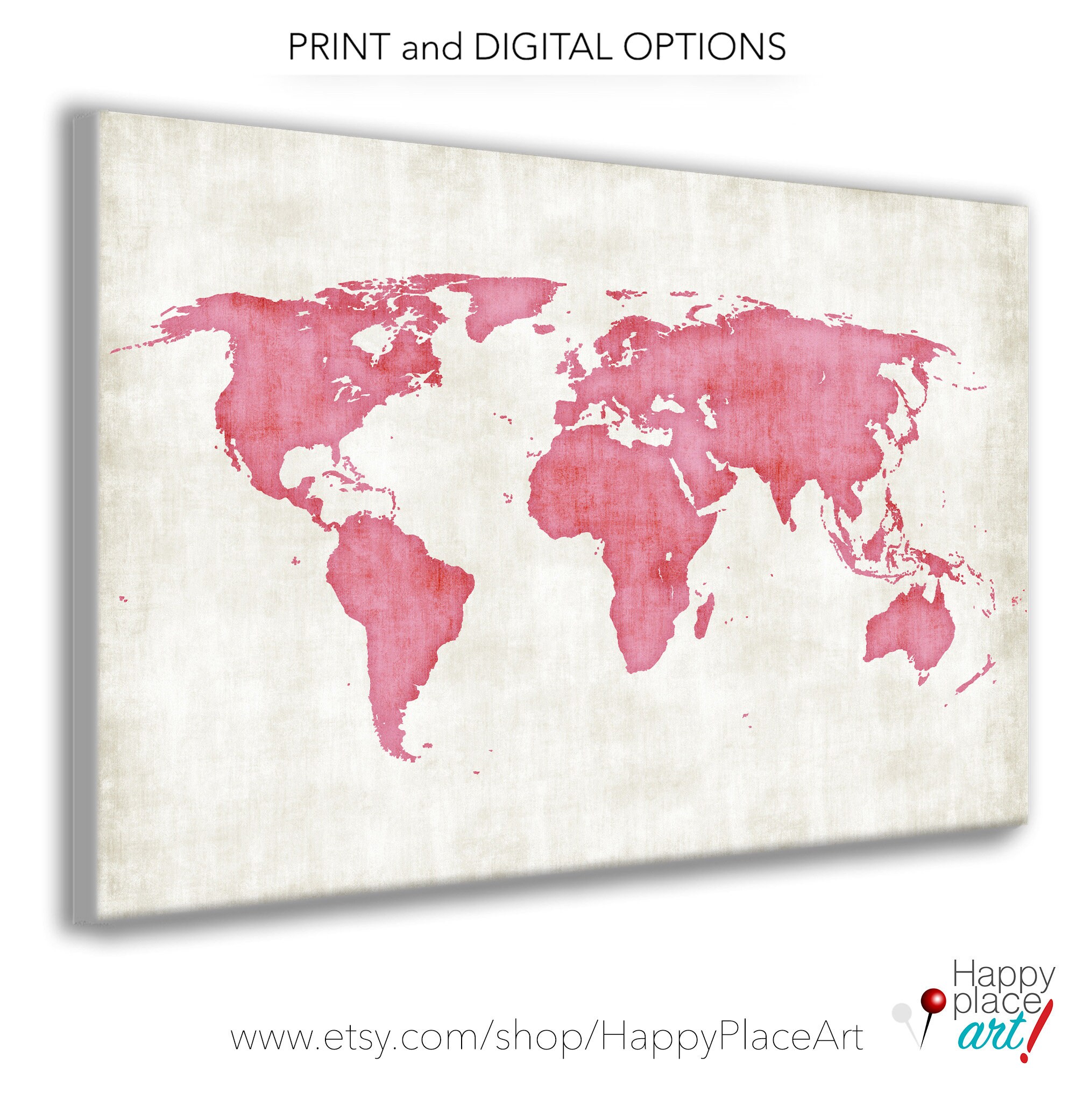 Pink Textured World Map Poster Print Or Printable Map Grunge World Map Distressed Map Girls World Map Art Pink World Map Vintage Pink
