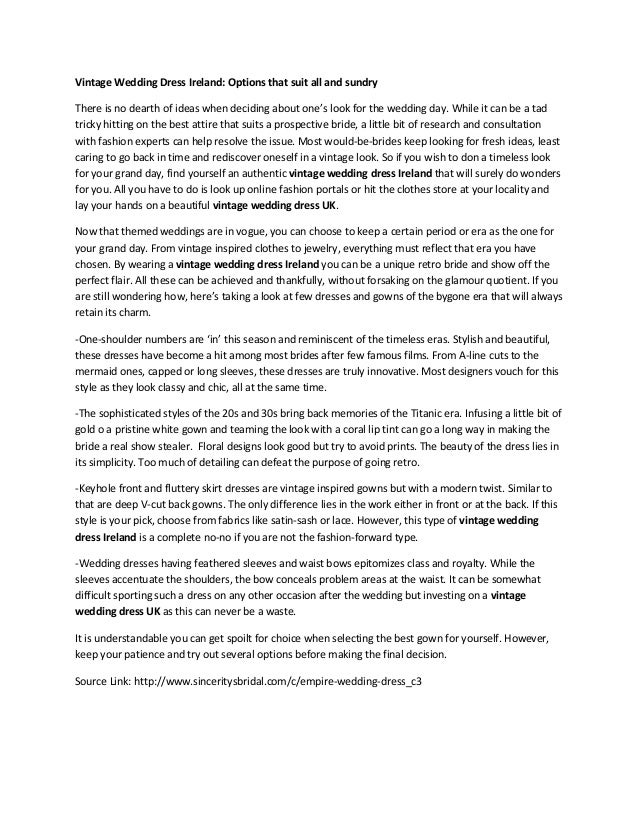 Vintage Wedding Dress Ireland Options That Suit All And Sundry