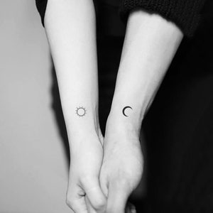 Sun And Moon Matching Tattoos Sun Moon Tattoo Bestfriendtattoos Matching Small Feine Tatowierungen Minimalistisches Tattoo Minimalistische Tatowierungen