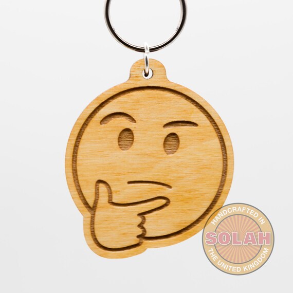 Thinking Face Emoji Keychain Thinking Face Emoji Carved Wood Etsy