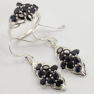 925 Sterling Silver Jewelry Earrings Ring Set 100 Natural Blue Sapphire Gems Ebay