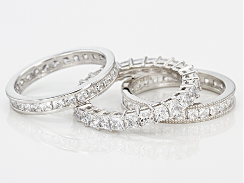 White Cubic Zirconia Rhodium Over Sterling Silver Rings Set Of 3 7 58ctw Cwb629 Jtv Com
