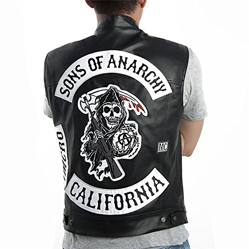 We all know SAMCRO stands for Sons of Anarchy Motorcycle Club Redwood Original, but others are more complicated Here's a rundown of what some of the patches actually mean Ace of Spades Patch A. Sons of Anarchy Grim Reaper Motorcycle Biker Style Large Embroidered IronOn/SawOn Patch Applique for Clothing MC Vest Jackets Backpacks 126 x inch $1099 Graphic Dust Grim Reaper Sons of Anarchy Iron On Embroidered Patch Skeleton Ghost Biker Badge Black Cross Symbol Motorcycle Racing Jean Jacket Backpack Heavy Metal Car Flames. The vest is the replica of the one worn by the character on the show On the back the Charlie Hunnam Sons of Anarchy Leather Vest has the Sons of Anarchy California logo and patches at the front The fine quality stitching makes the Sons of Anarchy Vest durable to wear The vest is the choice of fans due to its omnibus appealing features.
