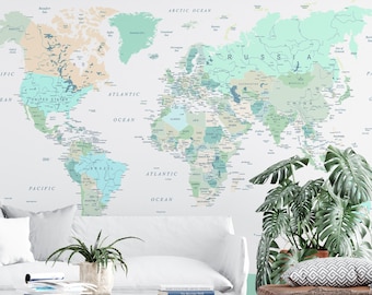 Detailed Giant Colorful Detailed World Political Map Wall Mural Removable Wallpaper