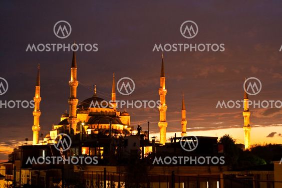 Angestrahlte Sultan Ahmed Moschee Oder Sultanahmet Camii Unesco Weltkulturerbe Europaischer Teil Istanbul Turkei Asien Stock Photography Ibxjor Fotosearch