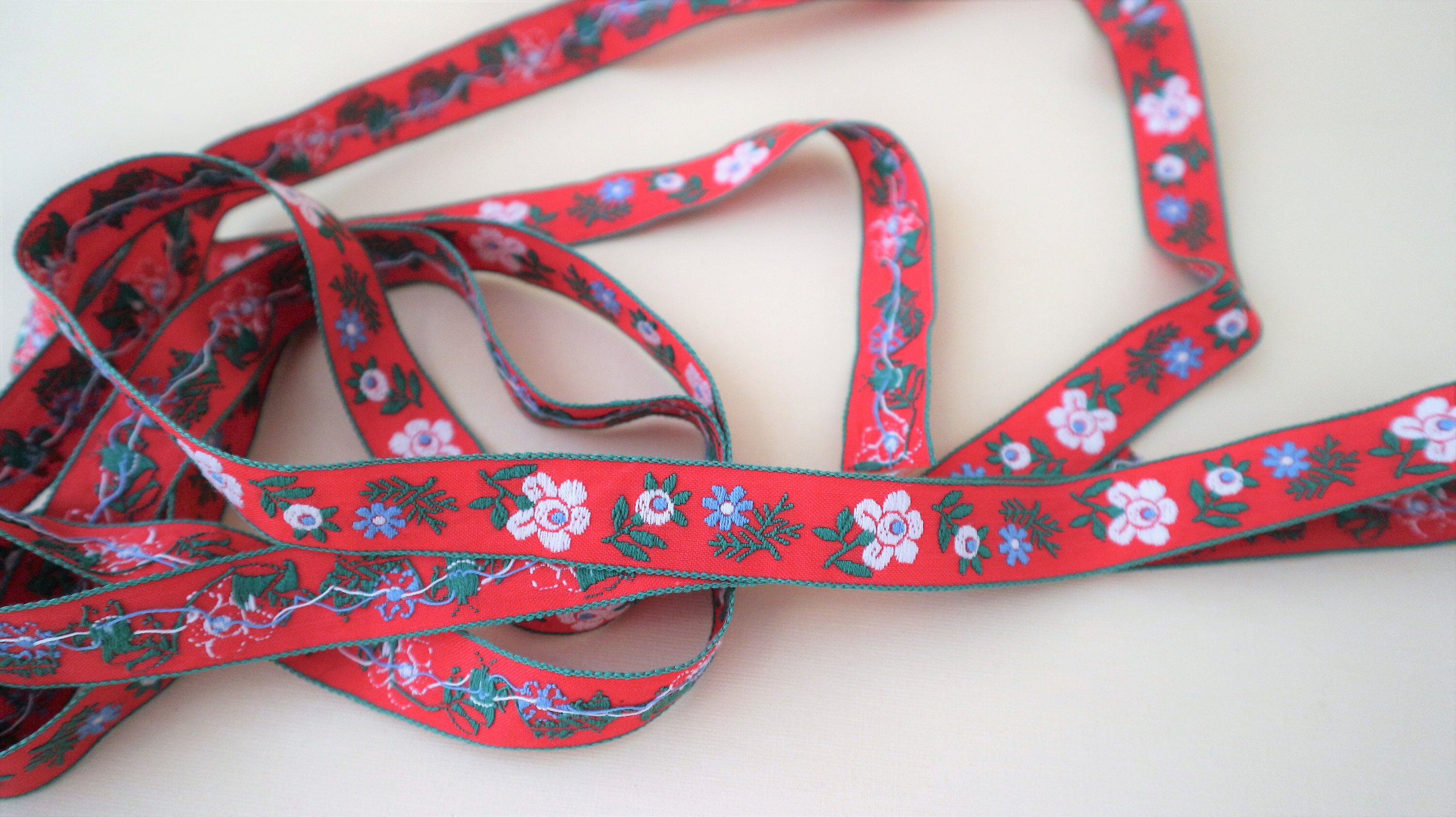 2 3m Vintage Trachtenborte Dirndl Webband Borte Cotton 70s Flowers