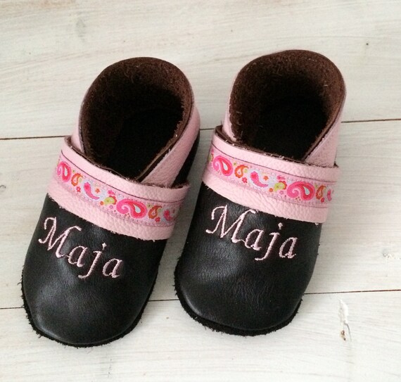 Krabbelschuhe Lederschuhe Mit Namen Und Webband Etsy
