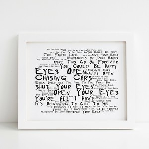 Elliebeanprints Chasing Cars Snow Patrol Lyrics Print