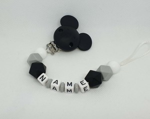 Schnullerkette Mit Namen Wunschname Mickey Maus Grau Schwarz Silikon Schnuller Ebay