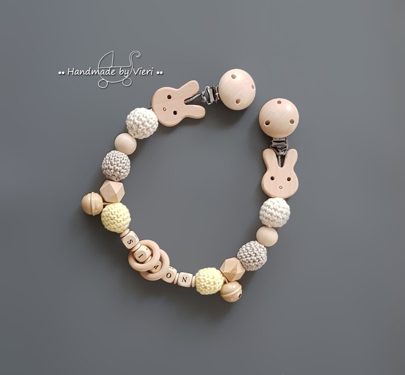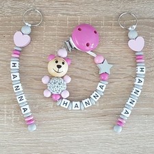 Schnullerkette Mit Namen Natur Holz Grun Grau Teddy Geburt Taufe Baby Schnuller Ebay