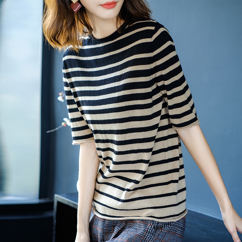 Funny Harajuku Stripe Vintage T Shirts Women Short Sleeve Casual Summer Crop Tops Heart Embroidery Knit Tee Shopee Singapore