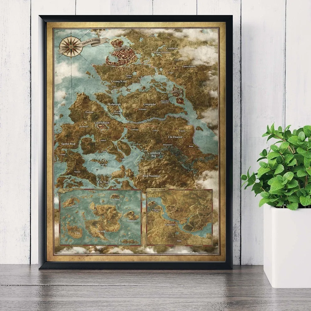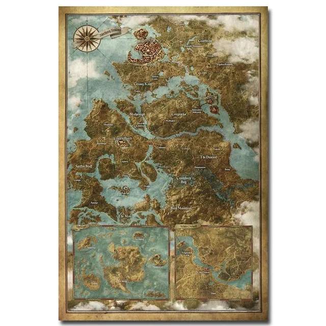 Witcher The Poster Wizard 3 Map Of The Kingdom Of The Kingdom Of The Northern Kingdom Of Ancient Painting Decorative Painting Poster Map Map Mapposters Posters Aliexpress