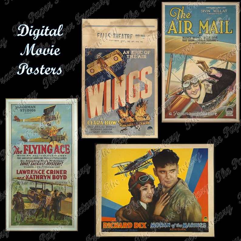 4 Vintage Aviation Digital Movie Posters Instant Download Etsy