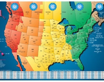 Printable Area Code Time Zone Chart (pdf) USA Canada Area Code Current Time Region;. Time Zone Map of the United States showing the six US timezones As you can see on the map, there are several US states split by time zones 1 Alaska observes Alaskan Time, Aleutian Islands west of 169° 30’ west observe HawaiiAleutian Time 2 Arizona does not observe DST, except for the Navajo Nation in the north eastern corner. (4) Click button "Show map & Table" to display USA time zones map (including Guam and American Samoa).