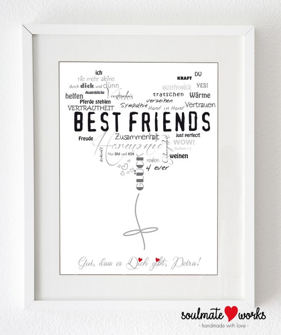 Schönes modernes Bild und tolles Geschenk für die beste Freundin, kleine Schwester, große Schwester zum selber ausdrucken Die Daten für die Personalisierung können Sie beim Kauf eingeben Das erhalten Sie PDF Datei – Versand per EMail Du erhältst eine PDF Datei an Deine Mailadresse,. Suchergebnis auf Amazonde für geschenk beste freundin Wählen Sie Ihre CookieEinstellungen Wir verwenden Cookies und ähnliche Tools, um Ihr Einkaufserlebnis zu verbessern, um unsere Dienste anzubieten, um zu verstehen, wie die Kunden unsere Dienste nutzen, damit wir Verbesserungen vornehmen können, und um Werbung anzuzeigen. Ein Geschenk für die beste Freundin zu finden ist nämlich gar nicht so unmöglich wie es scheinen mag Egal ob sie Einhörner liebt oder doch lieber die Welt bereist, wir haben alles was das beste Freundinnen Herz begehert Und natürlich ein Geschenk für die Freundin, das von ganzem Herzen kommt und eure Verbundenheit zeigt!.