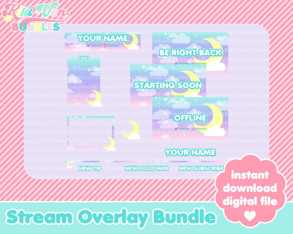 Pastel Night 3 0 Cute Pre Made Twitch Stream Overlay Bundle Etsy