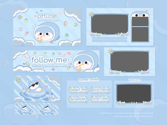 Cute Twitch Penguin Overlay Designs Stream Package Best Etsy