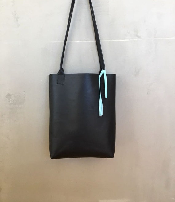 Large Leather Tote Black Leather Shopper Leather Bag Etsy
