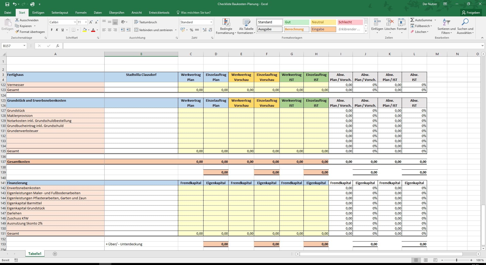 Excel Checkliste Baukosten Planung Fur Ihren Hausbau