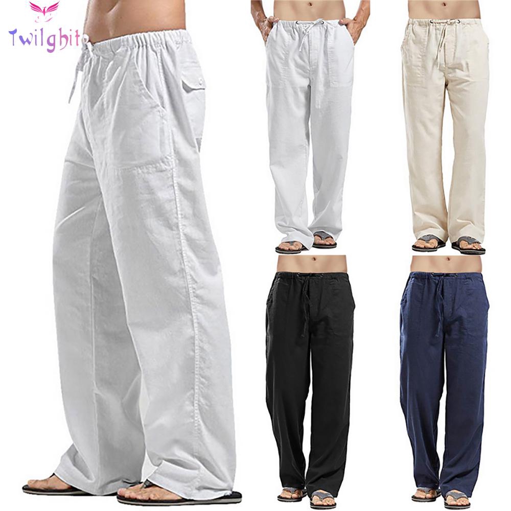 Trousers Pants Wide Leg Casual Straight Summer Baggy Beach Trousers Men Yoga Pant Drawstring Trouser Long Men S Shopee Singapore