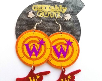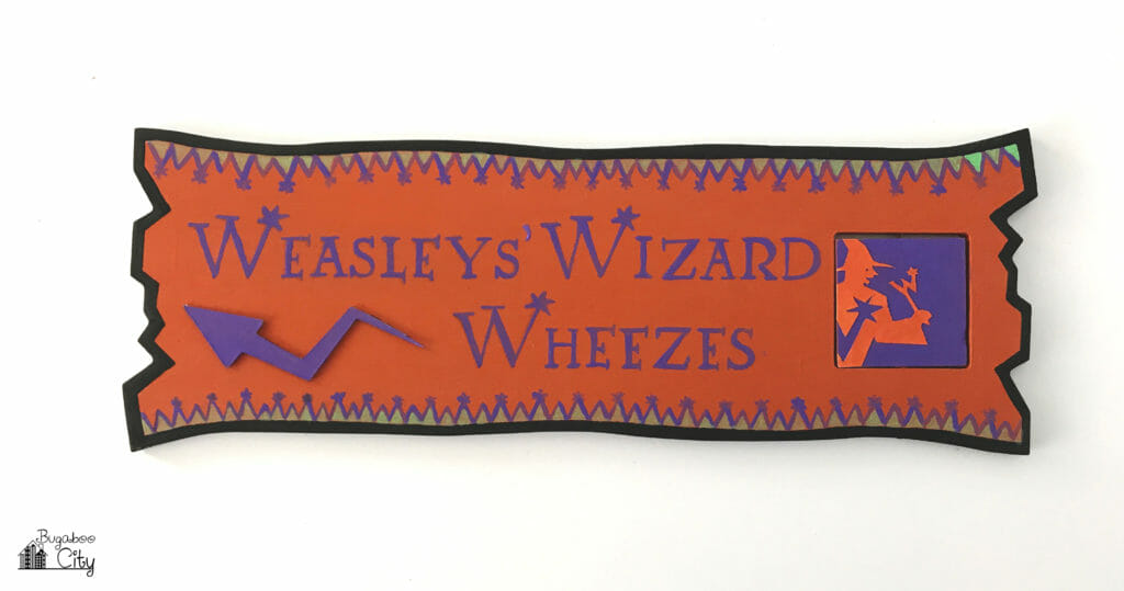 WEASLEYS’ WIZARD WHEEZES Font Used Lumos Latino (I added the stars to the “W”s) This sign was SO FUN to create!!. Orange and purple paper;. Weasleys Pick N Trix!.