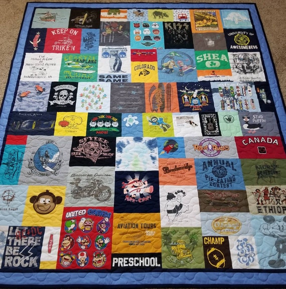 T shirt quilt. And you've found the right website for turning your beloved tshirts, jerseys, uniforms, marathon Drifits, polos, oxfords, or anything made of fabric into an awesome tshirt quilt that will last a lifetime We have several styles to choose from, fun fleece fabric AND very competitive prices. Quilt top finished check!. Tshirt quilt,Personalized quilt, Jersey quilt, Adult size Tshirt quilt, college shirt quilt, high school shirt quilt, quilt, Shirt quilt, simplyprettyposies From shop simplyprettyposies 5 out of 5 stars (173) 173 reviews $ FREE shipping Bestseller Favorite Add to.