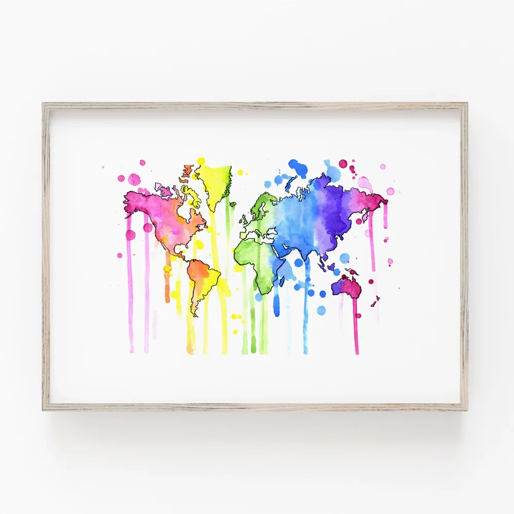 World Map Art World Map Poster Print Watercolor Map Colorful Map Fine Art Center
