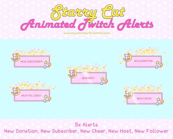 Starry Cat Animated Alerts Twitch Stream Alert Notification Etsy