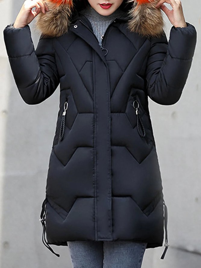 Schwarze Letter Taschen Reissverschluss Mit Fellkapuze Langarm Warmer Winter Verdickt Mantel Damen Daunenmantel Jacke Oberteile
