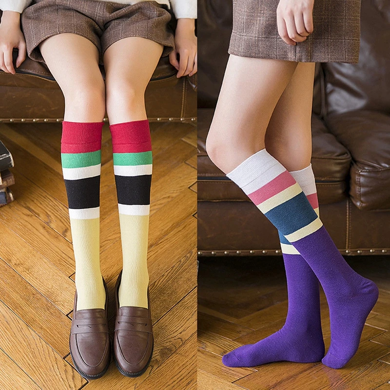 Fashion Striped Knee Socks Women Cotton Thigh High Over The Knee Stockings Plus Size Large Stockings Plus Size Stockings Sizessize Stockings Aliexpress