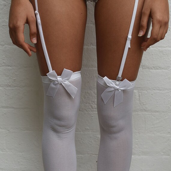 Ava Pin Up Black With White Bows Thigh High Stockings Plus Etsy