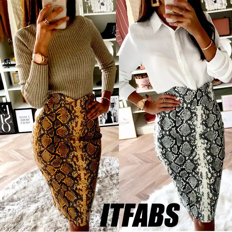 Schlangen Sexy Bodycon Vintage Rock Herbst Knie Lange Frauen Mode Hohe Taille Mini Bleistift Schlange Haut Rocke Dropshipping Rocke Aliexpress