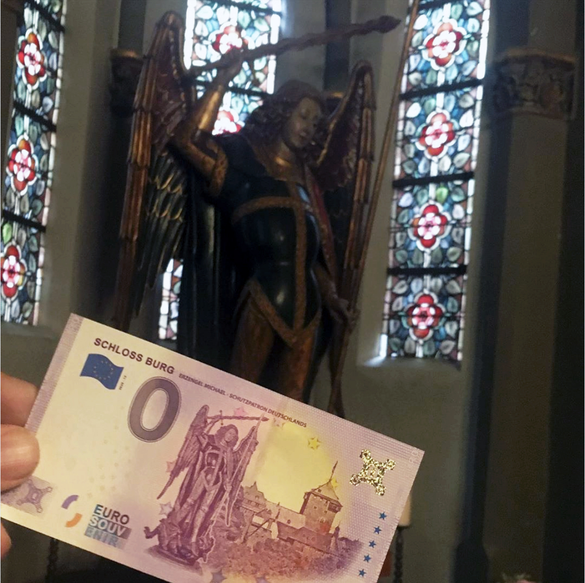 Euroschein Souvenir Schloss Burg Erzengel Michael Schutzpatron Deutschlands Sankt Michael Wird Angerufen Von Soldaten Gendarmen Polizisten Fliegern Fallschirmspringern Reisenden Kaufleuten Handwerkern Gegen Blitz Unwetter