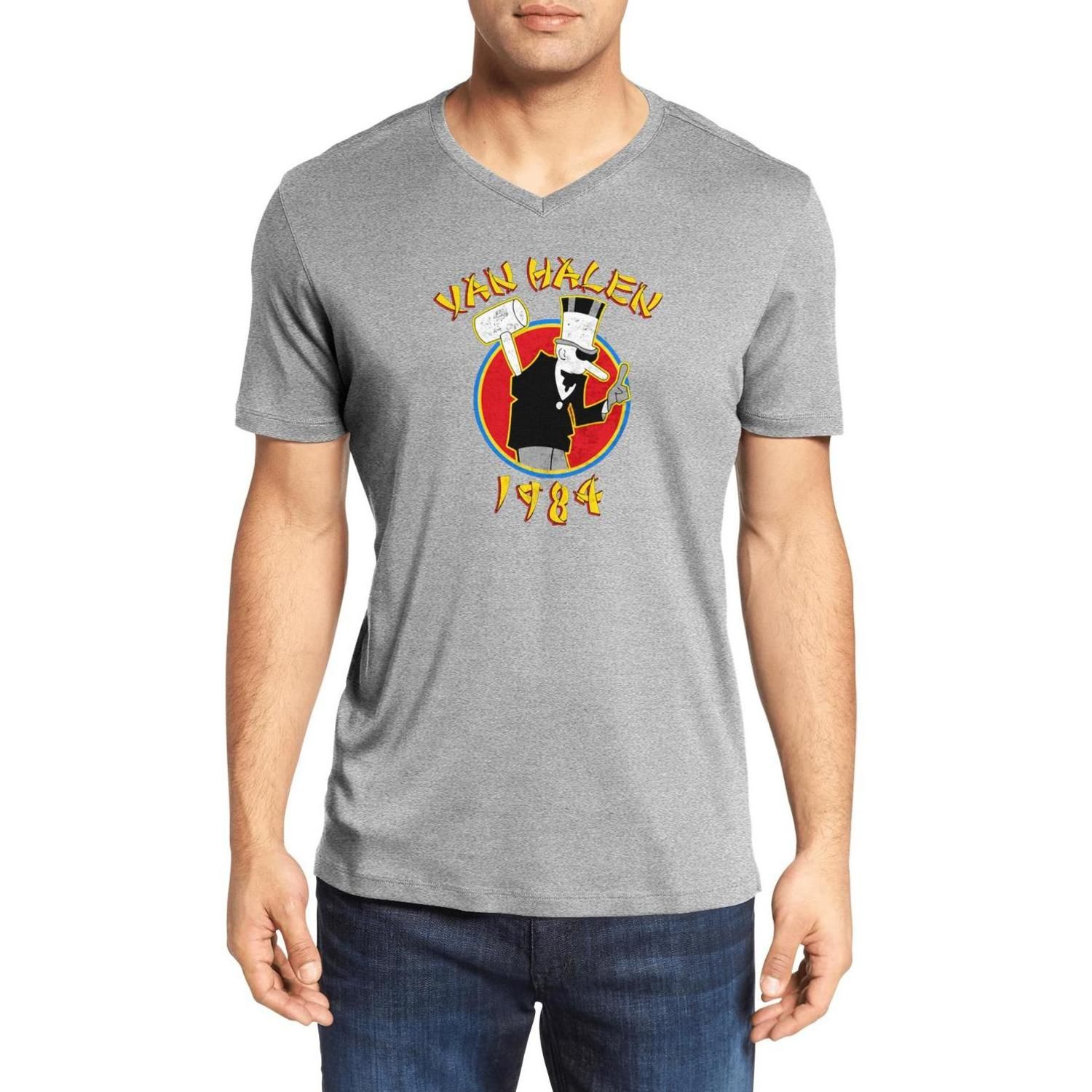 Mens Van Halen Fashion V Neck T Shirt Design Band Cotton Shirt Novel Short Sleeve 1984 Logo Album Iii Tour Of The World Logo 6 19 3 4 Tee Shirts For Sale