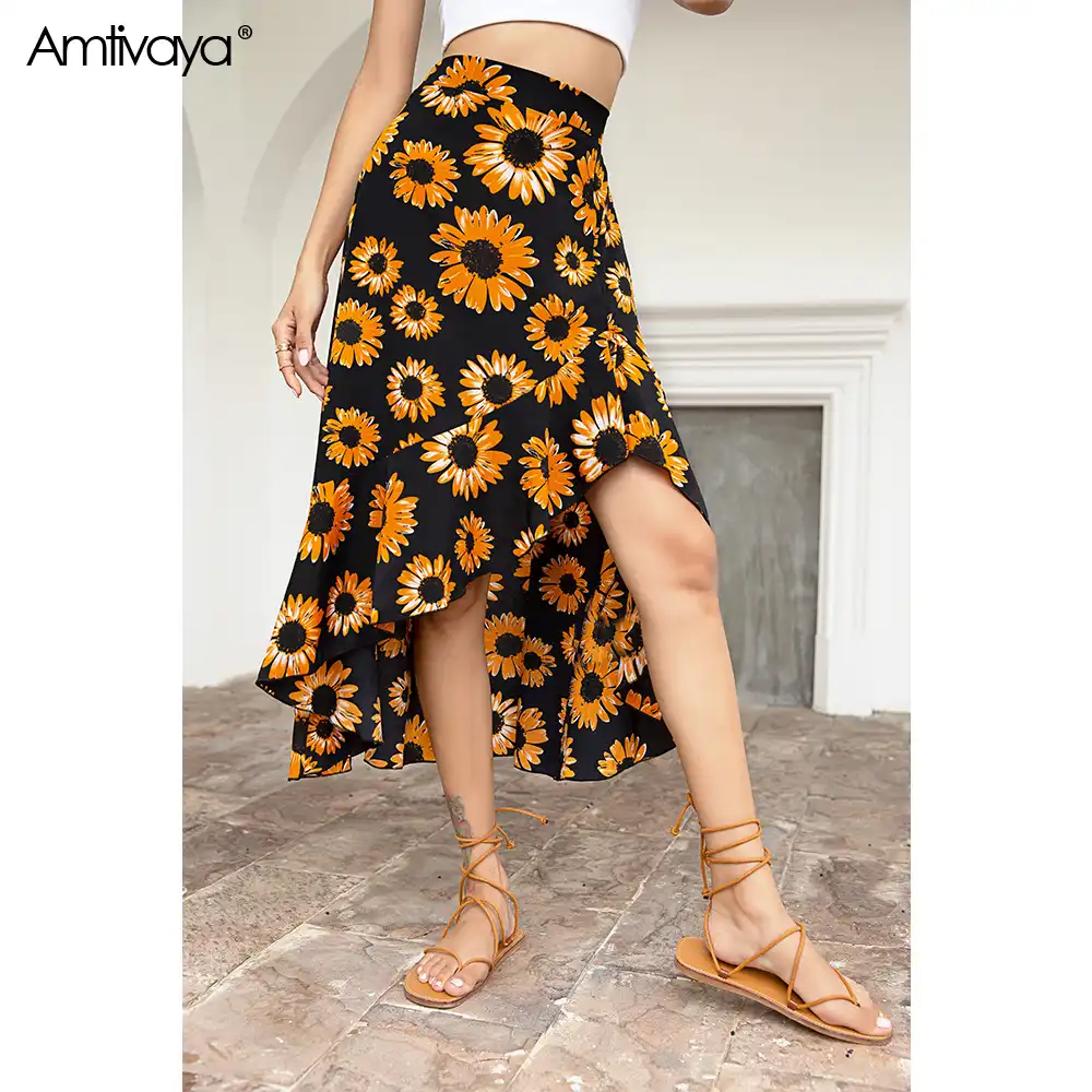 Amtivaya Y2k Vintage Maxi Rock Floral A Linie Hohe Taille Rock Kawaii Koreanische Frau Kleidung Damen Sommer Boho Kleidung Neue Rocke Aliexpress