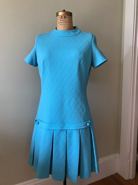 Damen Vintage Kleidung 1960 S Turkis Polyester Kleid Etsy
