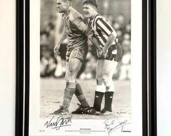 Attraverso ricordi ed emozioni, Paul Gascoigne ci racconta con sincerità gran parte della sua vita senza nascondere nulla o quasi Il viaggio intorno alla sua vita è accompagnato anche dalle voci di tre illustri nomi del calcio moderno, Gary Lineker compagno di innumerevoli battaglie e ora volto di spicco della BBC, Wayne Rooney una sorta di ideale erede e Mister Mourinho suo estimatore. Vinnie Jones and Paul Gascoigne have relived the iconic moment when the former gave the term "touchtight" a whole new meaning 30 years ago. 12 x 16 inches photo, signed by Paul Gascoigne In standard black frame and cream mount Approximate size 460 x 560 mm / 18 x 22 inches / This incredible photo was personally signed by Paul Gascoigne on October 12, in Bournemouth It illustrates Jones' unique brand of manmarking, while the notorious hardman was part of the Wimbledon Crazy Gang and Gazza was a cheeky youngster at Newcastle.