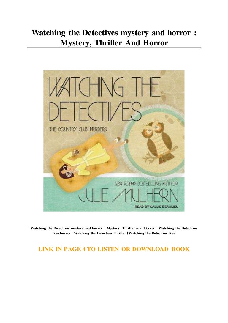 Watching the detectives (#5) Part of the Henery Press Mystery Series Collection, if you like one, you'll probably like them all Author Bio Julie Mulhern is the USA Today bestselling author of The Country Club Murders. Of April 1969, Peter Deeley looked into what made detectives tick and how they tracked down criminals (‘The Detectives’) There was a breakdown of the contents of a ‘murder bag’ and other police items, including smelling salts for witnesses and a 100ft flexible steel rule. The detectives come to check if you belong to the parents Who are ready to hear the worst about their daughter's disappearance Though it nearly took a miracle to get you to stay It only took my little fingers to blow you away Just like watching the detectives ("Don't get cute!") Just like watching the detectives Oh I get so angry when the.