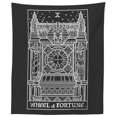 Wheel Of Fortune Tarot Card Tapestry Gothic Clock Tower Sphinx Anubis Wall Art Ebay