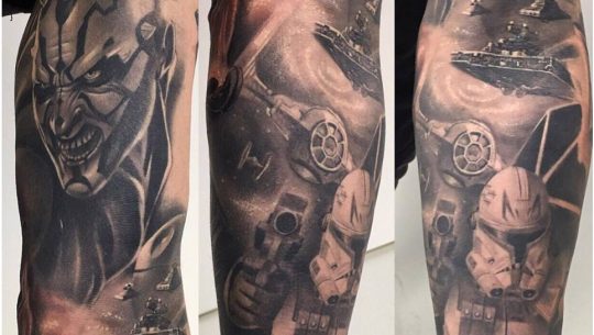 1 Star Wars Sleeve Tattoos Ah, the sleeve The Grand Master of visually rich tattoos Star Wars is the epitome of a 2 Darth Vader Tattoos Darth Vader The dark father himself Is there a more iconic villain in movie history?. Things go awry when Luke is trying to find Leia’s cell and Han is forced to answer a call from an Imperial Officer He starts babbling incessantly, the script of which inspired this amazing tattoo Of all the quotes from Star Wars, it has to be the most inane, but also the most recognizable to true fans. TheForceNet, Your Daily Dose of Star Wars, get up to the minute updates on Star Wars Movies, Star Wars Television, Star Wars Literature, Star Wars Games, Star Wars Fandom, and so much more!.