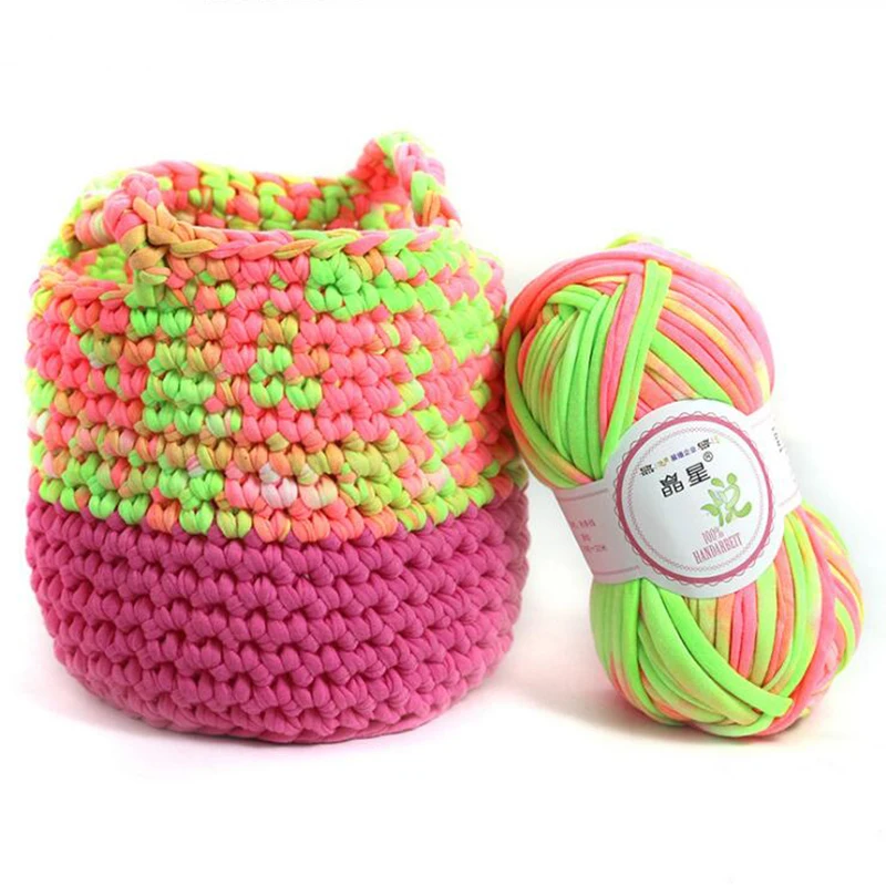 100 Polyester Weichen Dickes Garn Fur Stricken Handtasche Matte Grossen Effektgarn 2 Strange T Shirt Garn Mit 1 Stuck 6mm Hakeln T Shirt Yarn Thick Yarn For Knittingthick Yarn Aliexpress