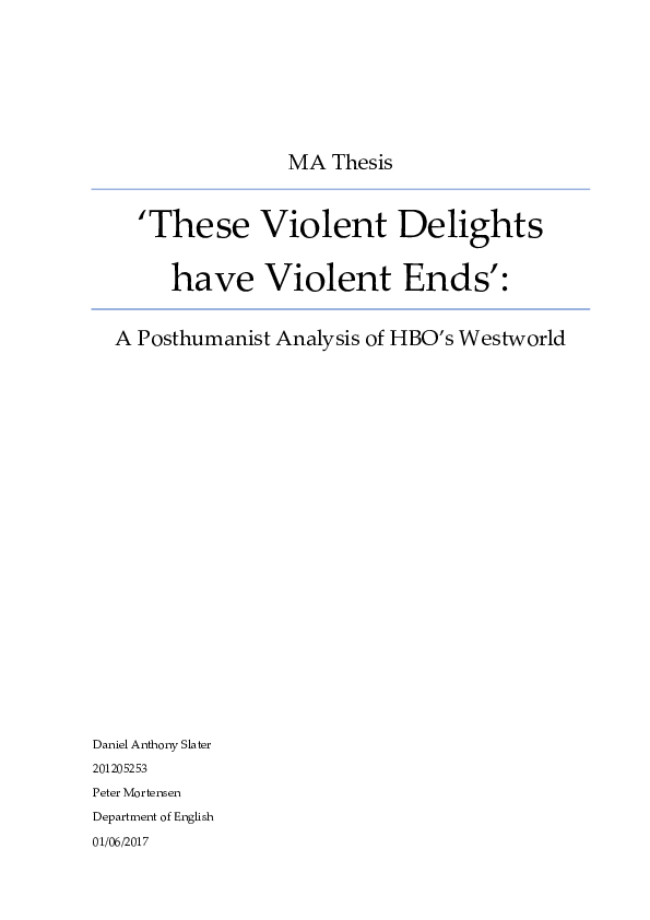 Pdf These Violent Delights Have Violent Ends A Posthumanist Analysis Of Hbo S Westworld Daniel Anthony Slater Academia Edu