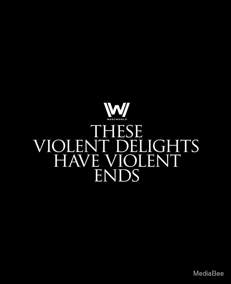 Westworld Print These Violent Delights Have Violent Ends •• INFO •• Designed digitally (original design) Printed on high quality 240gsm glossy photo paper Available sizes 4x6, 5x7, A5, 8x10, , A3, A3 Print will be securely wrapped in acid free tissue paper and carefully. 3) These violent delights have violent ends And in their triumph die, like fire and powder, Which, as they kiss, consume (II6911) Friar Lawrence talks to Romeo to calm down his passion He is warning Romeo that violent delights have violent ends This warning proves to be true in the end as they both die 4) But soft!. WESTWORLD / these violent delights have violent ends Well, I have a new favourite poet Aurora Borealis at this time of day at this time of year Well, I have a new favourite poet Everywhere at the End of Time Brendon Burton 𝐡𝐨𝐧𝐞𝐲_𝐛𝐛𝐲.