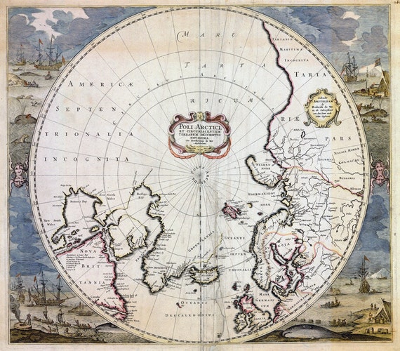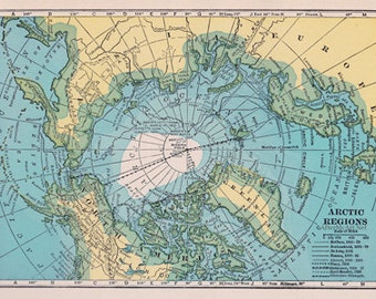 Huge Vintage Arctic Circle Map Historic Old World Map Of Etsy