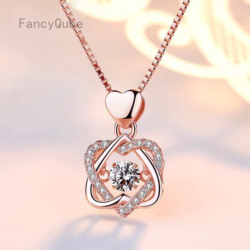 Korean 925 Sterling Silver Dancing Stone Necklace Pendent Heart Inlay a Diamond Pendant Anniversary Gift For Women Shopee Singapore