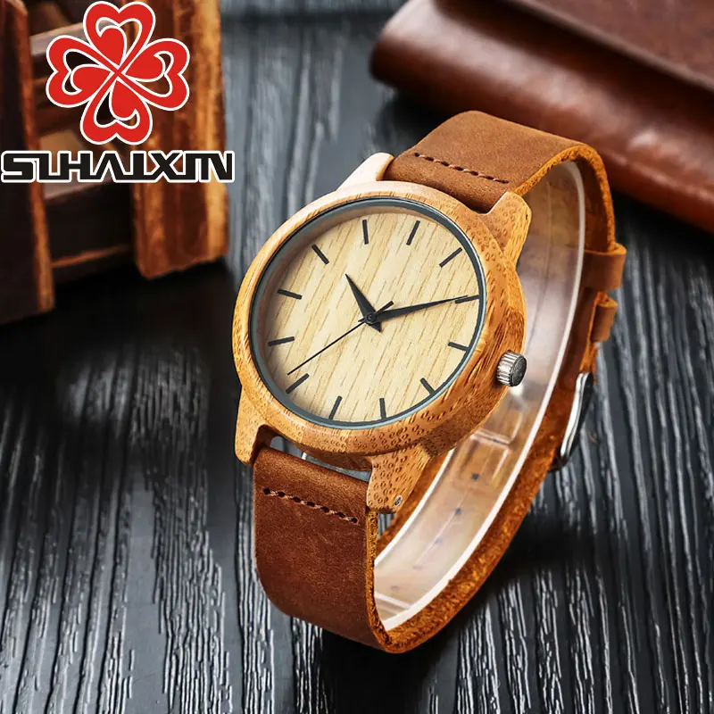 Sihaixin Uhren Holz Uhr Manner Made In China Erkek Saat Luxus Bambus Holz Mann Uhren Leder Quarz Mannlichen Uhr Fur Geschenk Quarz Uhren Aliexpress