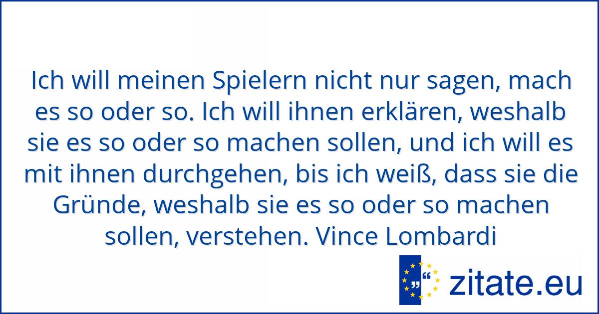 In a completely rational society, the best of us would aspire to be teachers and the rest of us would have to settle for something less, because passing civilization along from one generation to the next ought to be the highest honor and the highest responsibility anyone could have. — Vince Lombardi 30 “The key is not the will to win everybody has that It is the will to prepare to win that is important” — Bobby Knight 31 “When you win, say nothing When you. Zitate von Vince Lombardi Man nennt es coachen, doch für mich ist es unterrichten Ich will meinen Spielern nicht nur sagen, mach es so oder so Ich.