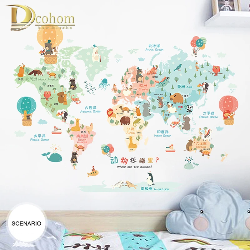 Hot Sale Self Adhesive Pvc Animal World Map Wall Sticker Kids Room Decoration Wallpaper China Wallpaper Wall Paper Made In China Com